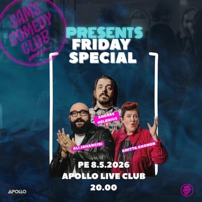 Suuren suosion saavuttanut Sam’s Comedy Club on toiminut Helsingin Apollossa vuodesta 2008 lähtien.